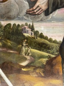 Un particolare della tela di Giovanni Maria Baldassini – raffigurante la Madonna col bambino e due santi – custodita nella chiesa della Vittorina a Gubbio