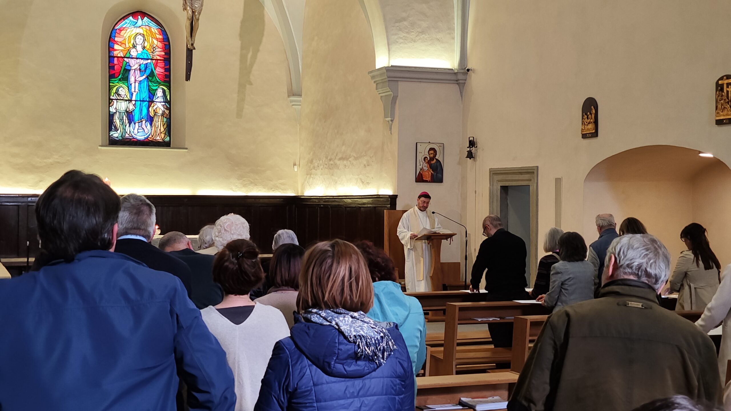 - La preghiera con il vescovo Luciano Paolucci Bedini durante i lavori della Commissione sinodale interdiocesana riunita a Umbertide