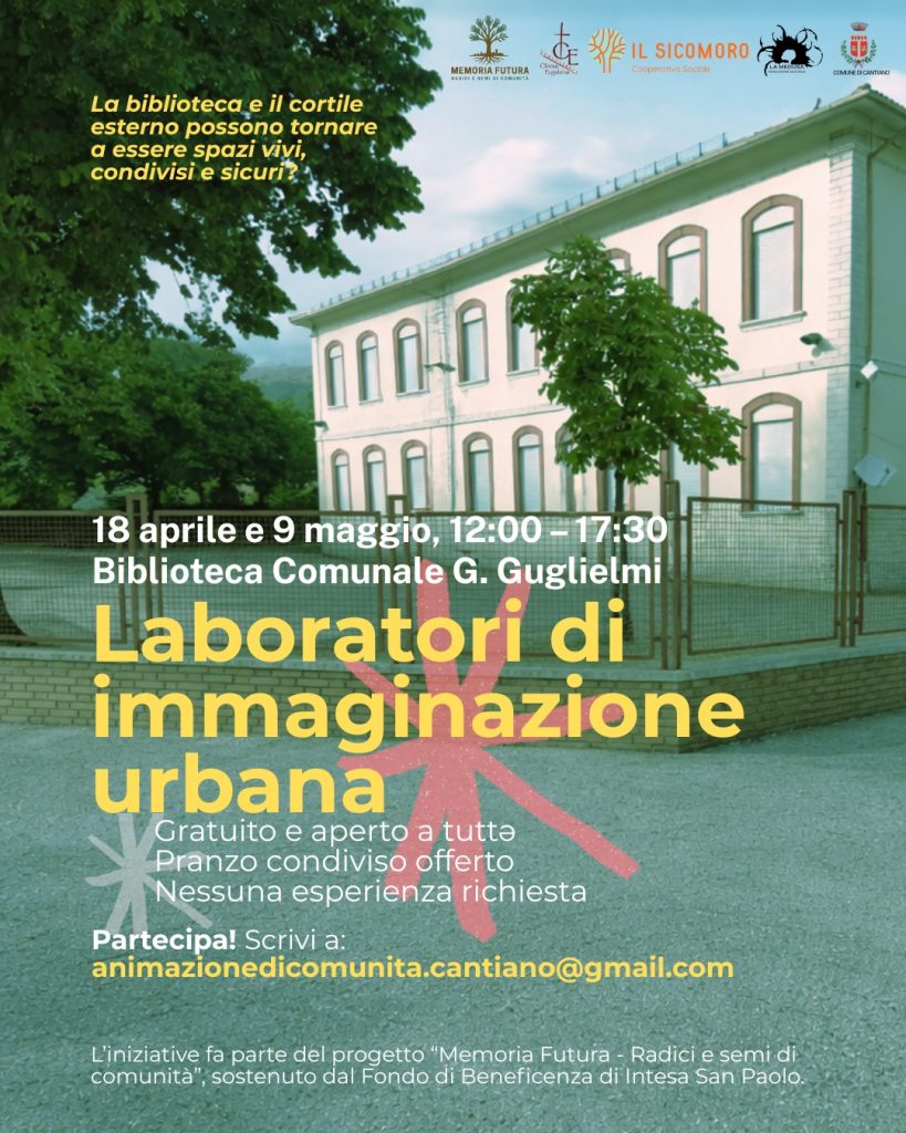Sabato 18 aprile e 9 maggio, nella Biblioteca comunale “Guglielmi”, si terranno i laboratori di Immaginazione urbana, un’iniziativa aperta a tutta la cittadinanza per ripensare e valorizzare lo spazio esterno che circonda scuola media e biblioteca, da sempre luogo di incontro, gioco e socialità per bambini, ragazzi e famiglie.