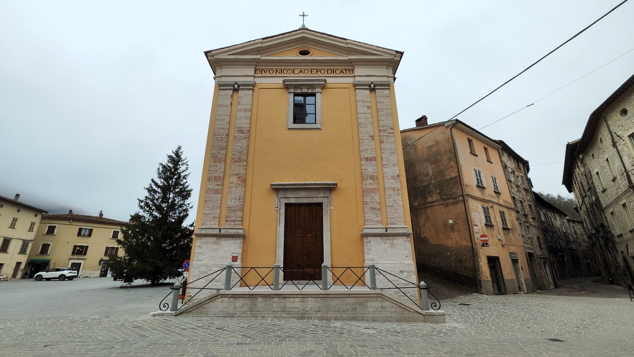 - L’esterno della chiesa di San Nicolò a Cantiano, appena restaurata