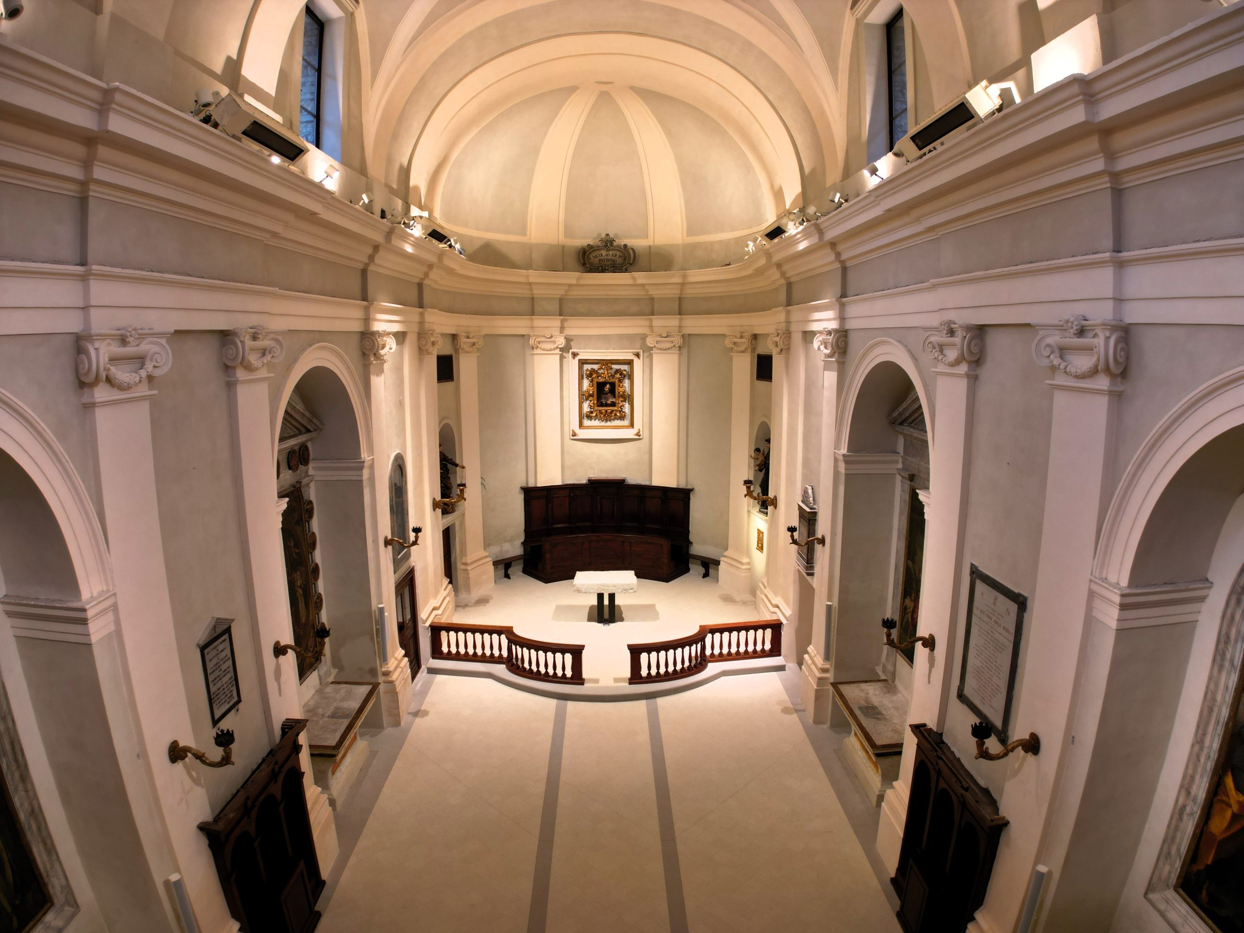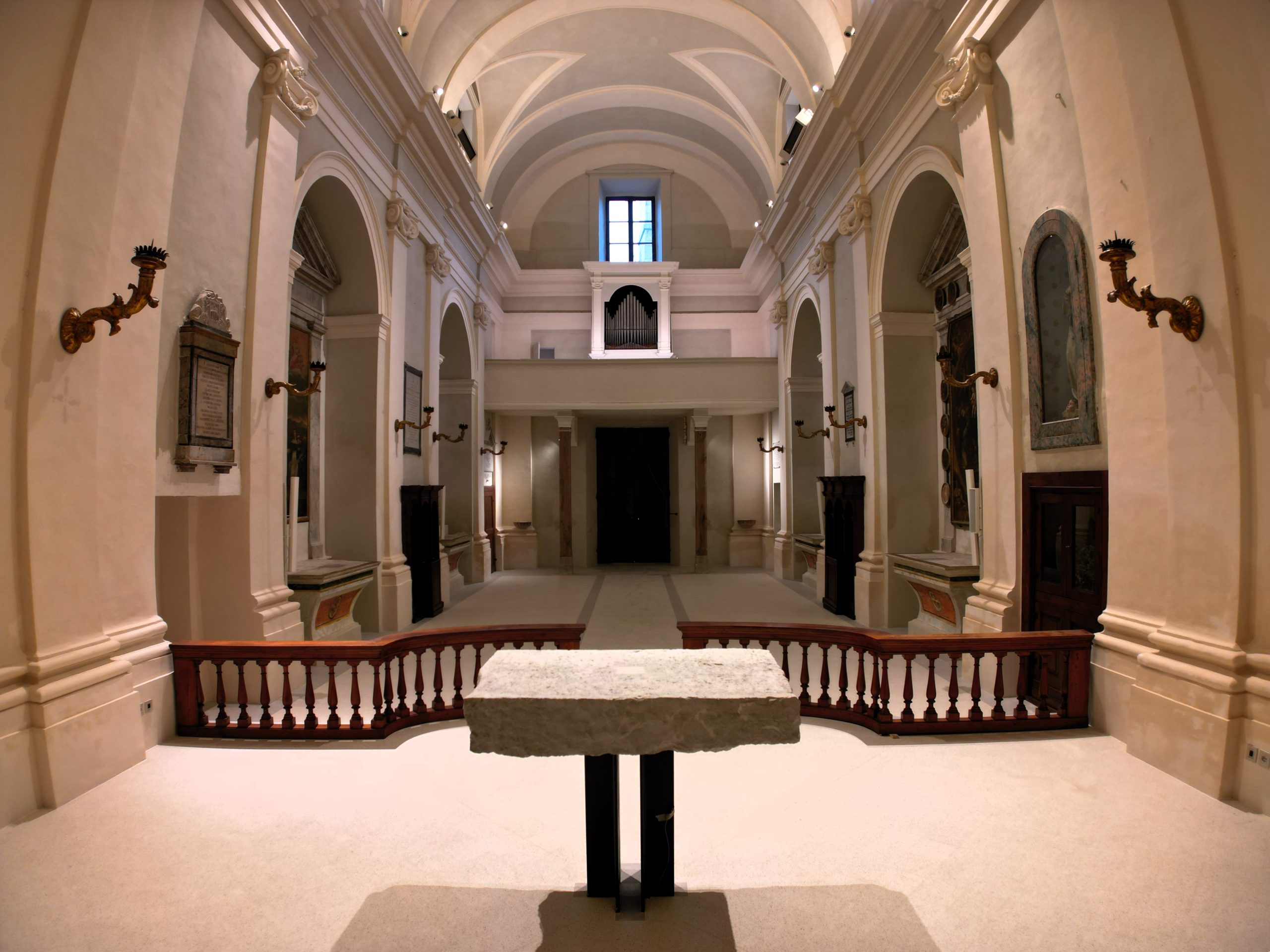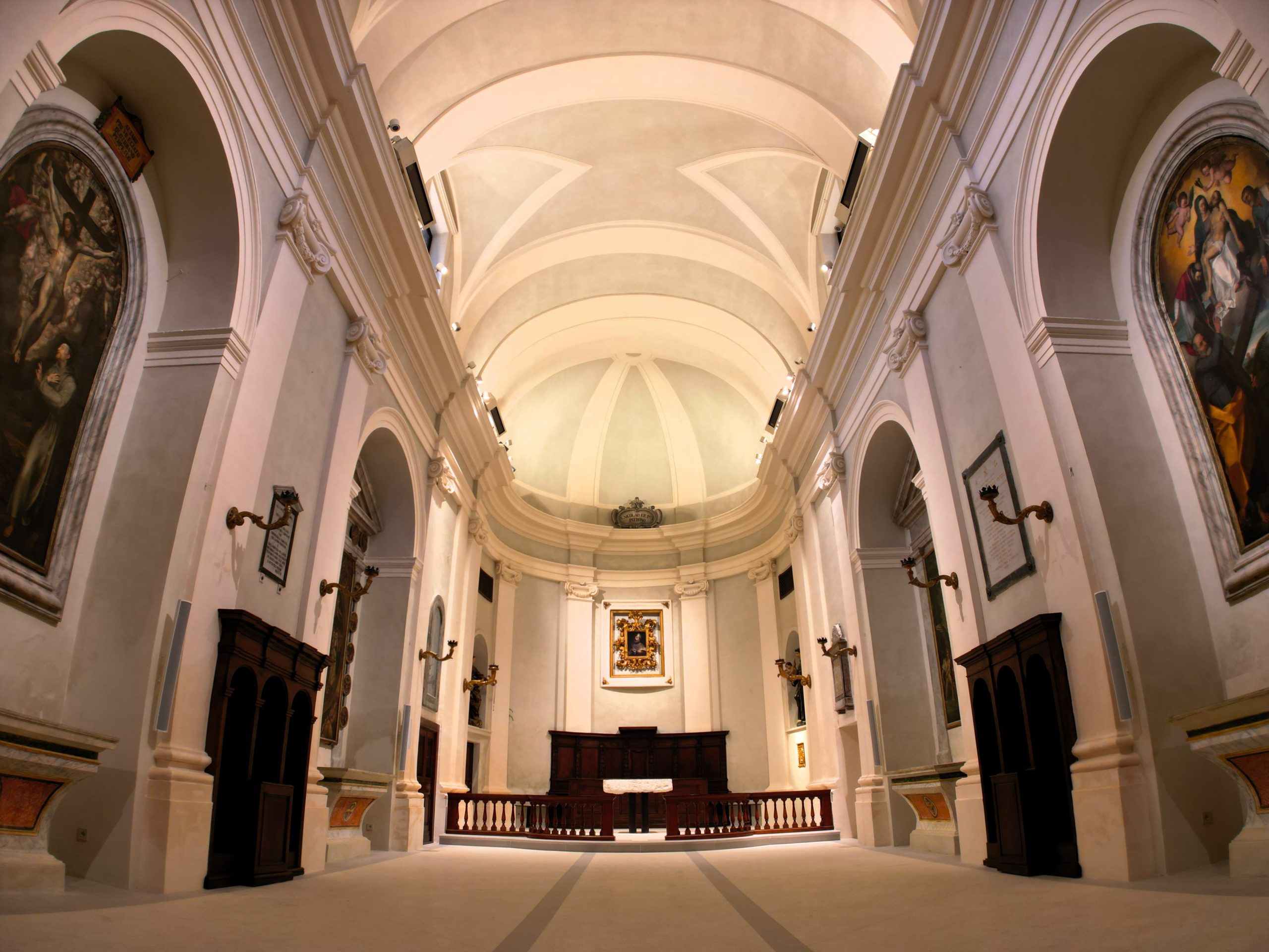 - L’interno della chiesa di San Nicolò a Cantiano, appena restaurata