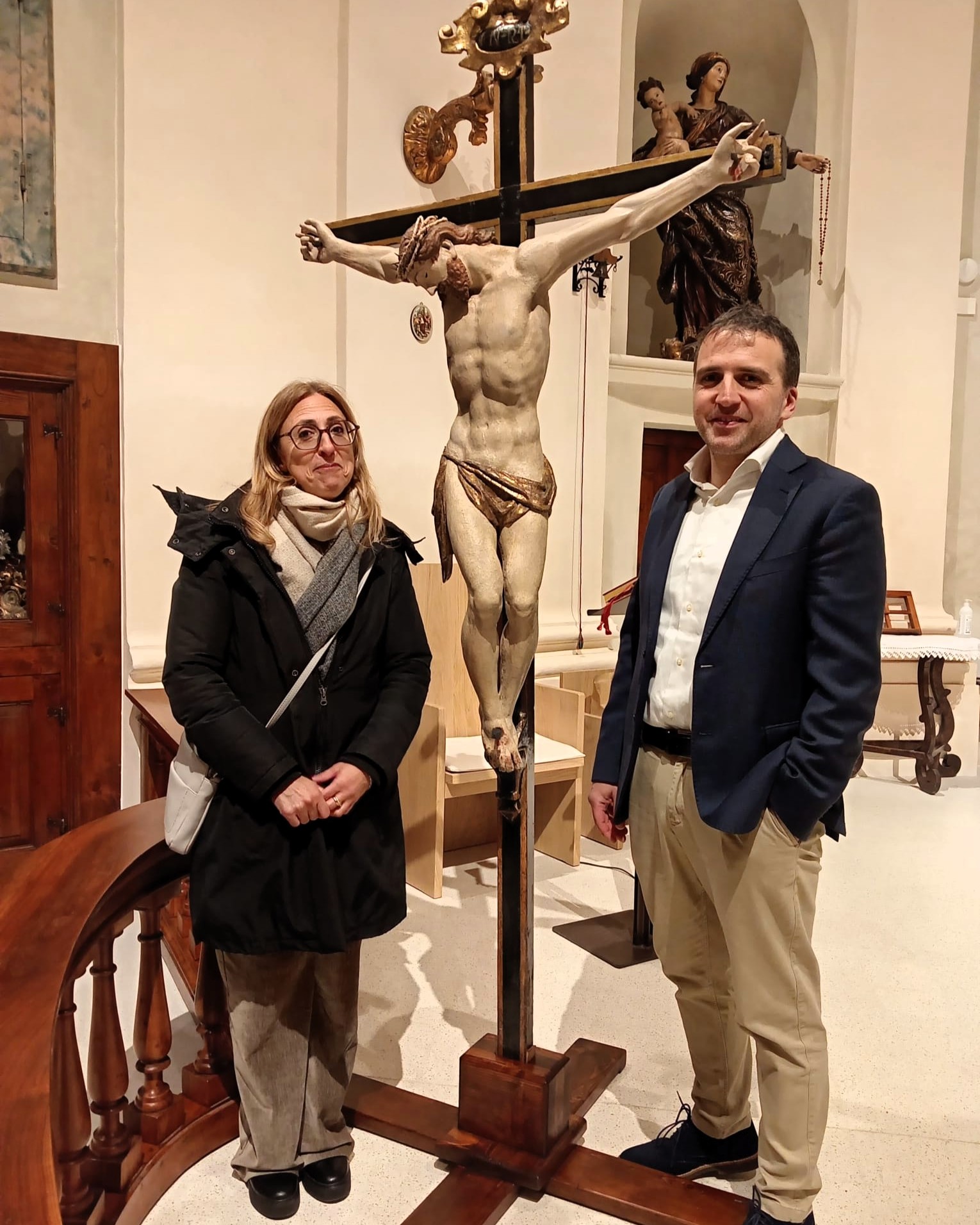 Torna alla comunità di Cantiano il Crocifisso della collegiata di San Giovanni Battista, raggiunto e danneggiato dall’alluvione del settembre 2022. È stata la chiesa di San Nicolò, riaperta al culto nel dicembre scorso, a ospitare la cerimonia di riconsegna di un’opera sacra di grande valore, che rappresenta anche un segno concreto di attenzione verso il patrimonio religioso e culturale del territorio. Ed ora, oltre al recupero artistico-culturale, l’opera potrà tornare alla venerazione dei fedeli proprio in occasione dei prossimi riti pasquali, a cominciare dall’azione liturgica del Venerdì Santo, con il bacio della croce.