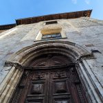 Elemento di particolare pregio è il portale in pietra ad arco a tutto sesto, risalente al XIII secolo, impreziosito da colonne e capitelli scolpiti a motivi floreali, unico resto dell’antica chiesa dei Disciplinati di Sant’Agostino. La parte superiore della facciata, invece, risale al XV secolo, rendendo immediatamente leggibile la duplice fase costruttiva dell’edificio.