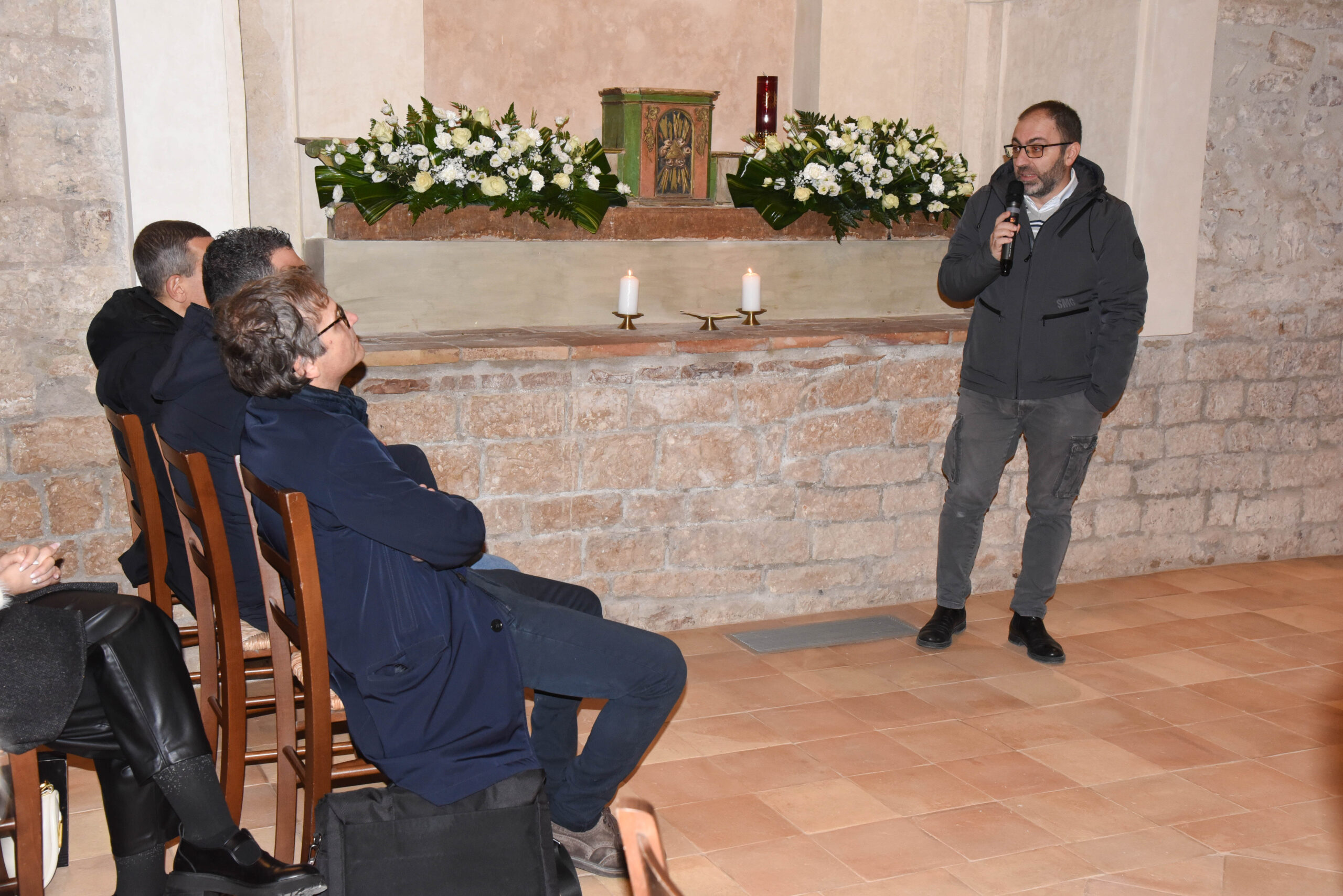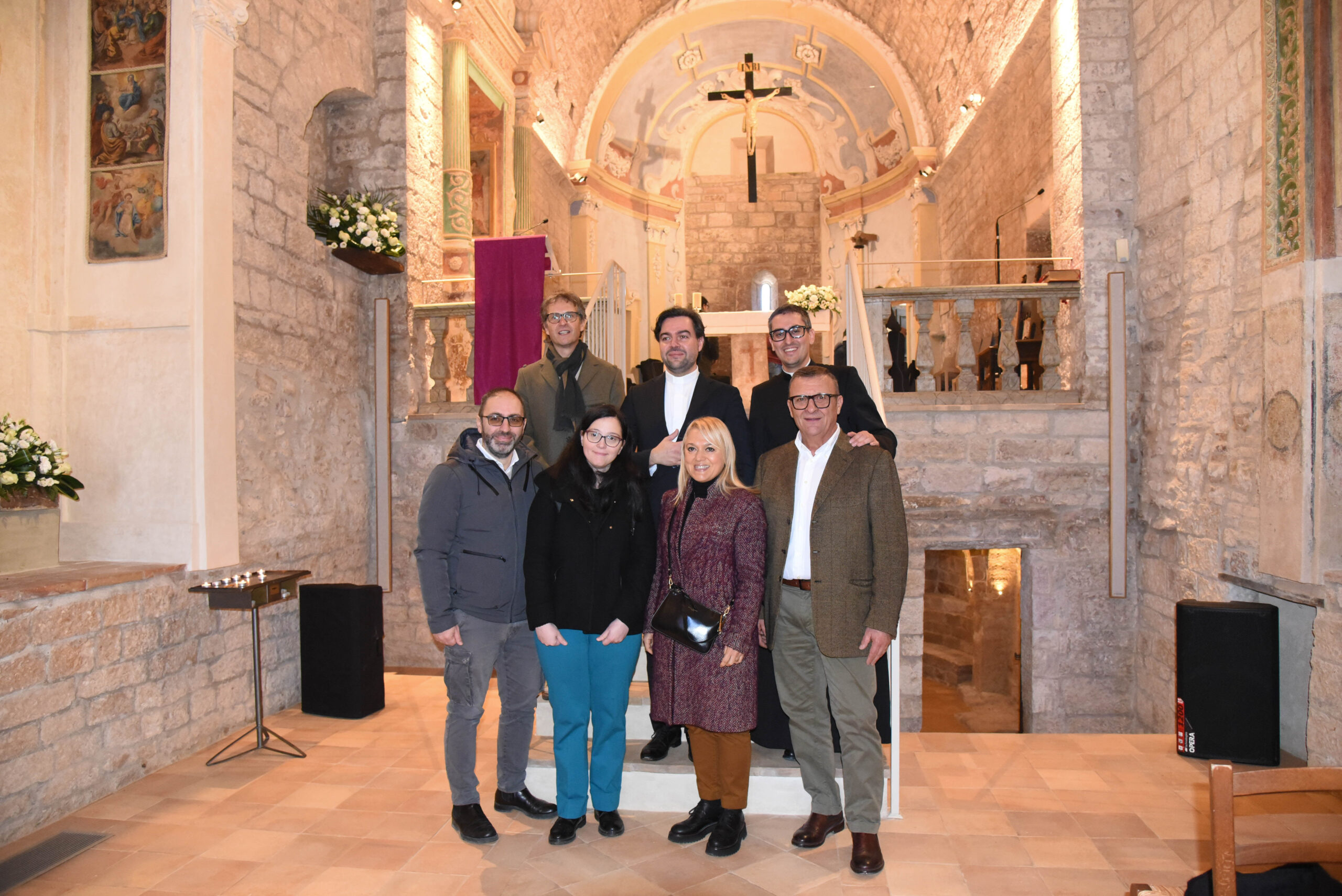 Sono seguiti i ringraziamenti al direttore dei lavori, arch. Francesco Raschi, al coordinatore per la sicurezza, arch. Katia Billai, al progettista strutturale, ing. Gianluca Bei, e allimpresa Pelucca Samuele Srl, nella persona di Fausto Marionni. Fra le maestranze coinvolte, anche la locale Ikuvium, che ha curato il restauro. Menzionata inoltre la Soprintendenza dei Beni architettonici e culturali, con Florian Castiglione e Giovanni Delogu. Nel suo emozionato intervento, don Francesco ha ricordato anche i sacerdoti che prima di lui hanno amministrato la pieve: don Cristoforo Przyborowski, don Armando Minelli, ma soprattutto il primo che ha intuito la bellezza di questo luogo religioso, il compianto don Corrado Antonielli, parroco di Loreto dal 1953, che negli anni Sessanta avviò il primo intervento di recupero della cripta, fino a quel tempo adibita a pollaio.