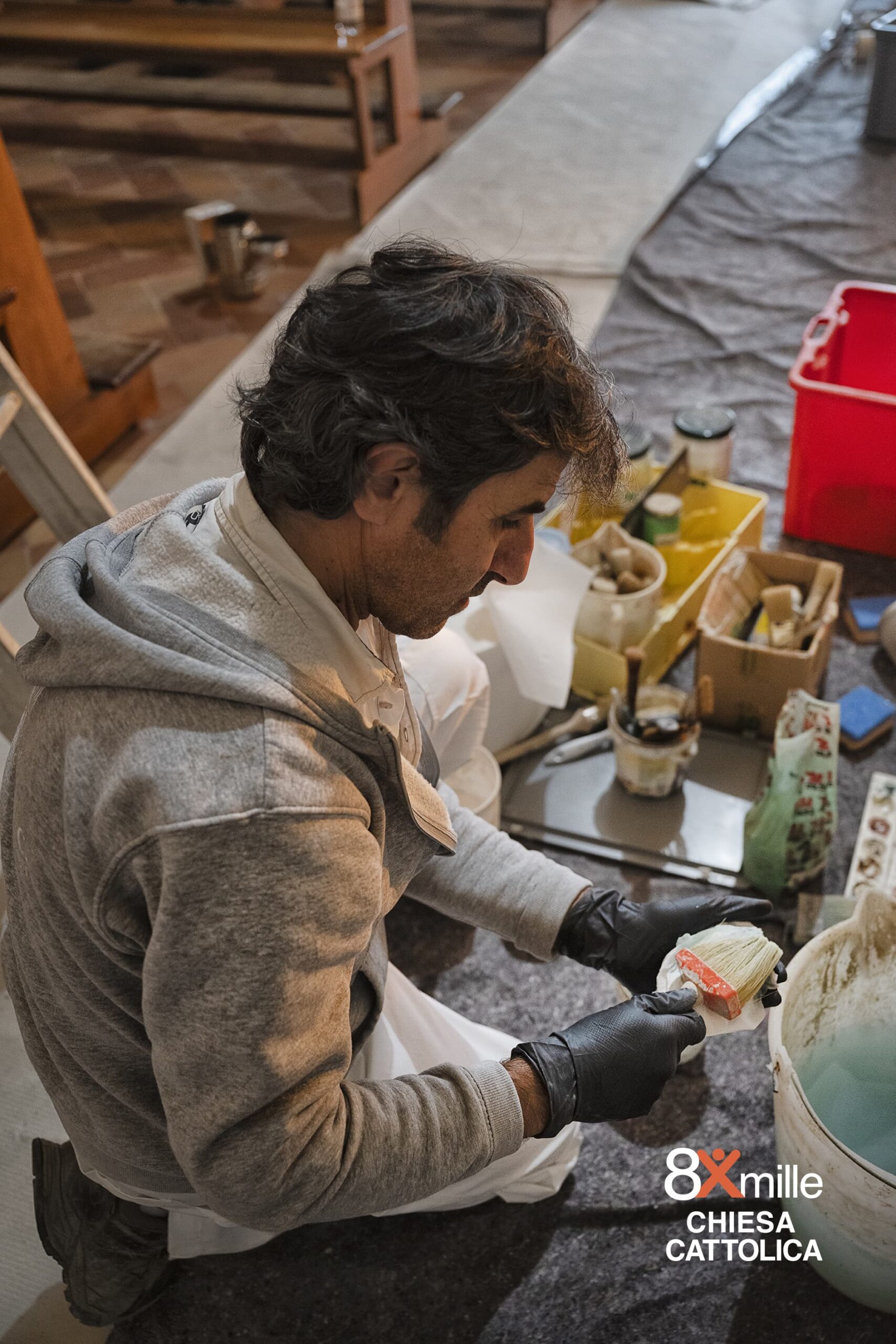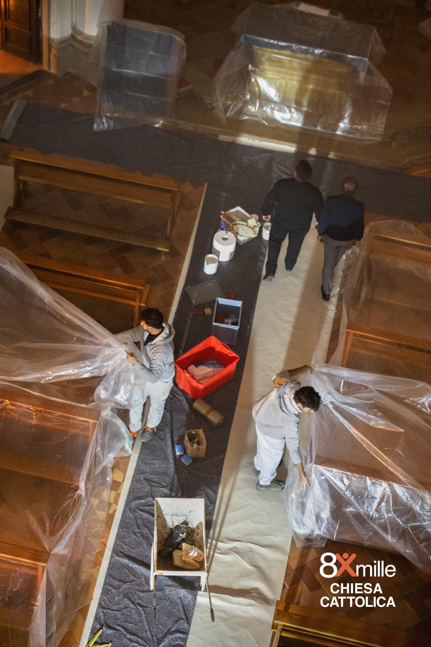 “Siamo partiti dalla ristrutturazione della pavimentazione fino alle parti in stucco, – spiega Francesco Raschi, architetto responsabile del progetto di restauro – i modanati, le colonne, le trabeazioni, giungendo al consolidamento e al restauro dell’affresco vero e proprio. Senza l’intervento dei fondi dell’8xmille della Chiesa cattolica, questo intervento non sarebbe stato realizzato, ma neanche pensato”.