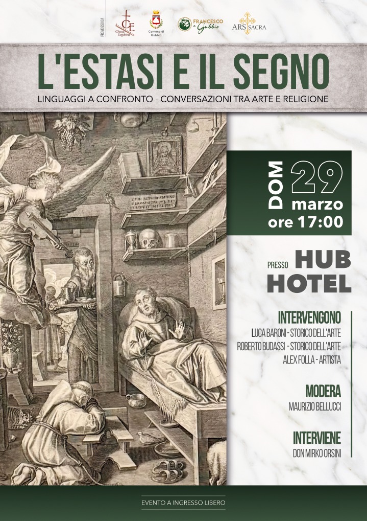 L’incisione come linguaggio artistico trasversale, capace di attraversare epoche, stili e sensibilità, diventa protagonista dell’incontro L’Estasi e il segno, linguaggi a confronto – Conversazioni tra arte e religione, in programma domenica 29 marzo alle ore 17 all’Hub Hotel di Gubbio.