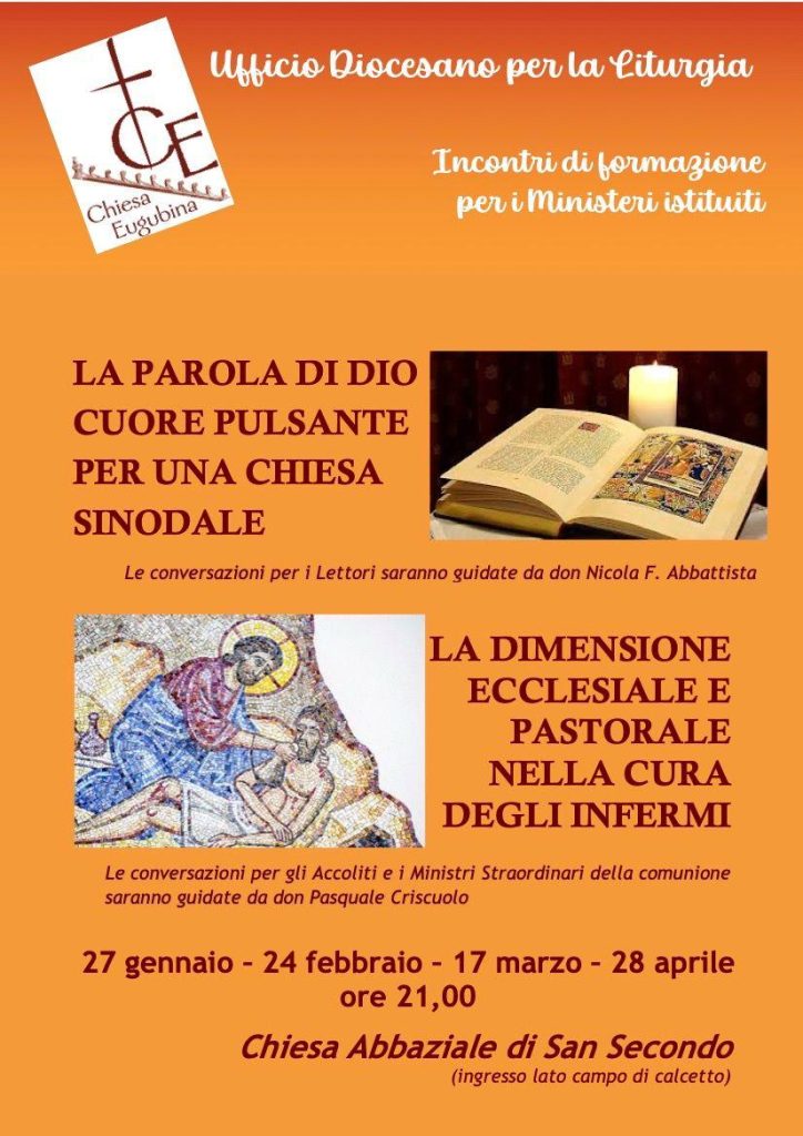 L’Ufficio diocesano per la Liturgia della Chiesa Eugubina propone un ciclo di incontri di formazione per i ministeri istituiti, rivolto a lettori, accoliti e ministri straordinari della comunione. L’iniziativa si colloca nel solco del cammino di una Chiesa sinodale, chiamata a crescere nella corresponsabilità e nel servizio, attraverso un rinnovato ascolto della Parola di Dio e un’attenzione concreta alla dimensione pastorale.