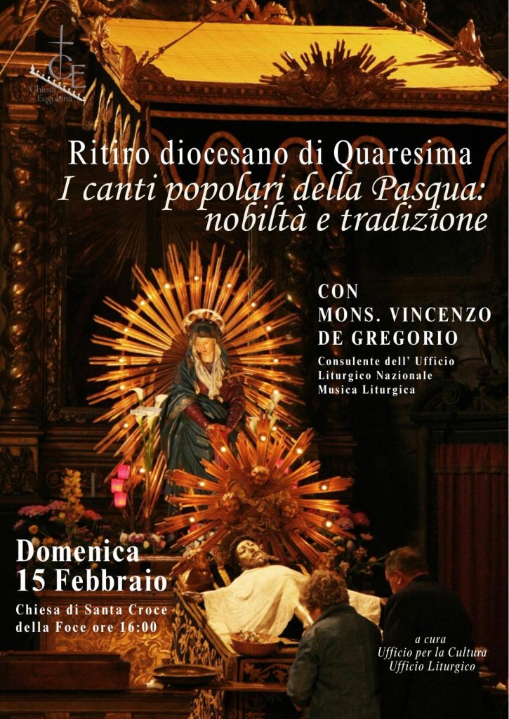 Il ritiro quaresimale sarà preceduto, sabato 14 febbraio, da un incontro diocesano rivolto ai cori, agli animatori liturgici e ai gruppi parrocchiali, dedicato al valore del canto nella liturgia e nella vita delle comunità. L’appuntamento, che si terrà nei locali della parrocchia di San Secondo alle ore 16, sarà anch’esso guidato da mons. De Gregorio e intende sottolineare come il canto non sia un semplice accompagnamento, ma una forma essenziale di partecipazione e di annuncio. Come ricorda don Pasquale Criscuolo, direttore dell’Ufficio liturgico diocesano, la qualità del canto incide profondamente sulla qualità della preghiera e della celebrazione.