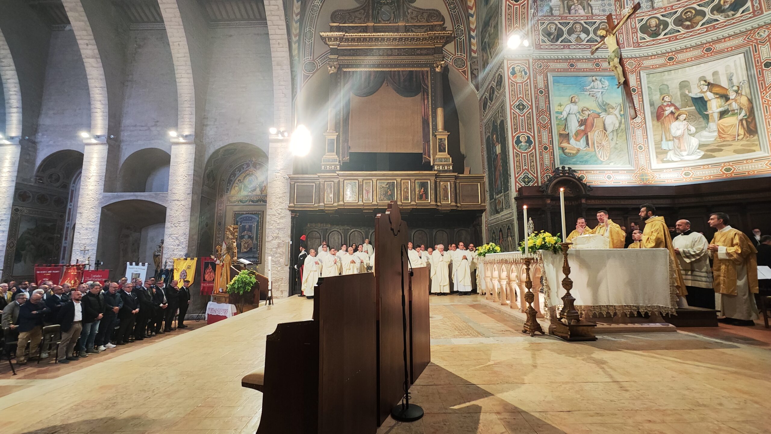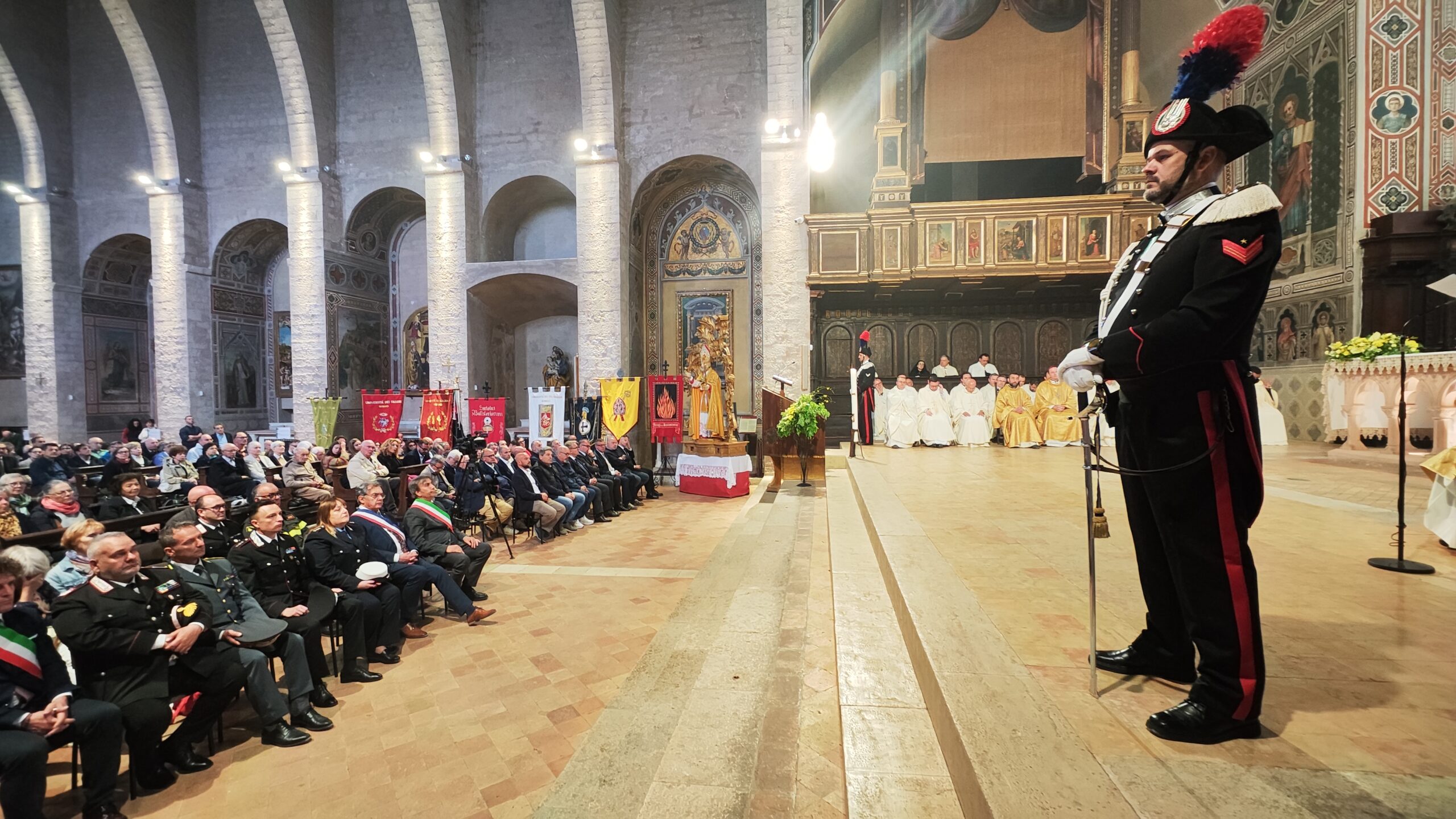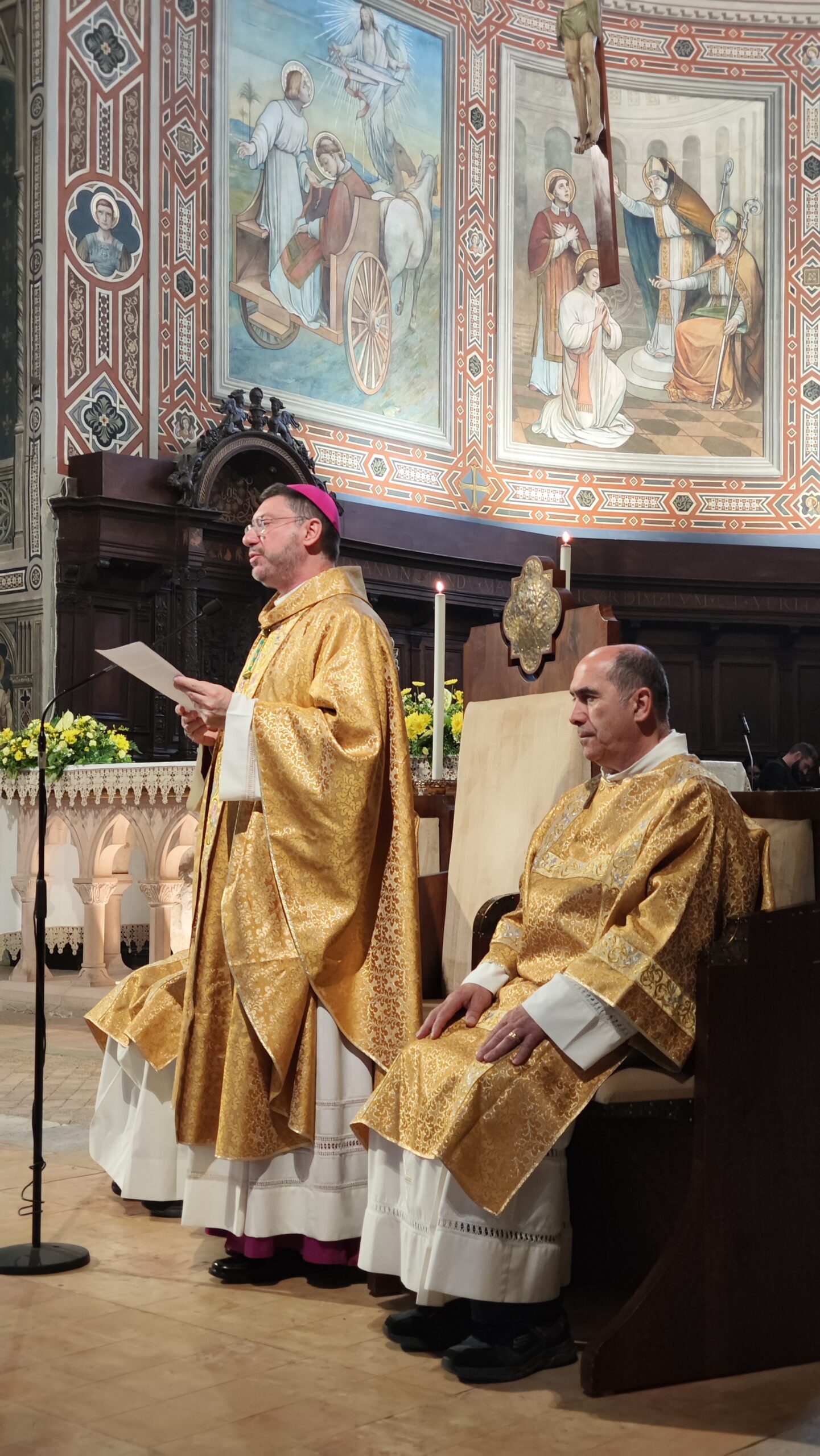 Con affetto sincero e letizia di cuore saluto tutti voi convenuti in questo tempio meraviglioso. Il Sindaco di Gubbio, Vittorio Fiorucci, insieme agli altri amministratori del nostro territorio. Le autorità civili e militari che hanno voluto condividere con noi questi giorni allegri. Tutte le realtà associative, custodi dei valori e dello stile della Festa. Gli amici fraterni delle città gemellate, che con fedele presenza ogni anno non mancano di celebrare la nostra stessa gioia. Un ringraziamento sentito alle forze dell’ordine che hanno vigilato sullo svolgimento sicuro e rispettoso della nostra festa.