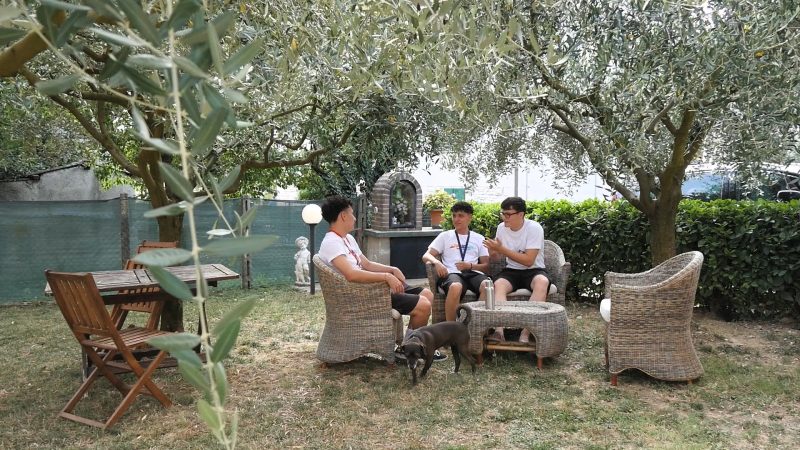 Durante una delle tante conversazioni tra amici, Sebastian ed Elias raccontano a Cristiano il loro sogno: venire in Italia, visitare luoghi come Assisi e Roma e partecipare al Giubileo dei Giovani. È lì che scatta qualcosa. «Ho detto a mia madre: “Mamma, facciamoli venire”», ricorda Cristiano. Una proposta che sorprende, ma che non incontra resistenze nella famiglia di Ferruccio e Beatrice che, oltre a Cristiano, hanno anche altri due figli.