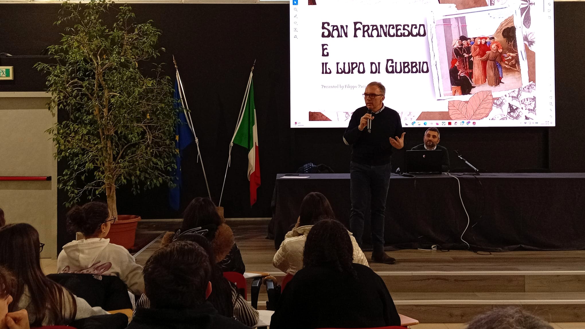 Proprio Paciotti sottolinea il valore di questo doppio registro: «Un’attività importante è stata quella di raccontare con una narrazione ampia, libera, ma anche partecipata con gli studenti la storia di san Francesco, quella vera, reale e la leggenda del lupo di Gubbio in particolare, riuscendo a far dialogare questi due piani».