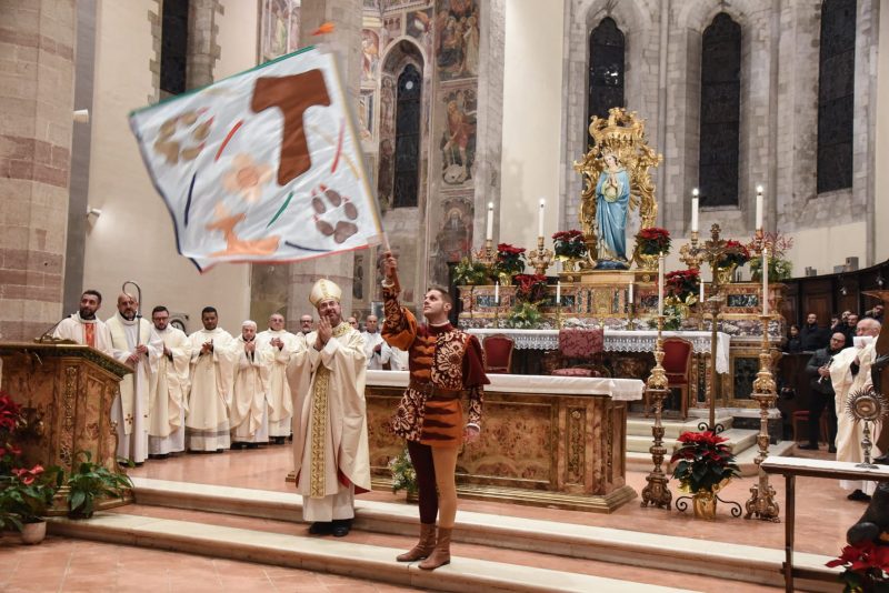 La bandiera ha già avuto un momento di forte valore simbolico. L’11 gennaio scorso, in occasione dell’apertura del Centenario francescano anche a Gubbio, il vessillo ha fatto il suo debutto al termine della celebrazione nella chiesa di San Francesco.
